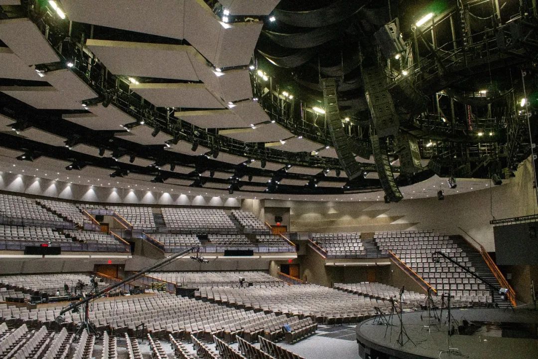 像許多其他當(dāng)代教堂一樣,Gateway Church在Southlake的禮堂的設(shè)計(jì)采用寬闊的扇形座椅環(huán)繞舞臺(tái)。雖然這樣會(huì)增強(qiáng)親切感,但通常會(huì)使音頻系統(tǒng)的設(shè)計(jì)更有挑戰(zhàn)性,尤其是很難在確保整個(gè)空間的高清晰度的同時(shí)保持立體聲聲像。因此,現(xiàn)有的Meyer Sound MILO線陣列系統(tǒng)被設(shè)計(jì)為L(zhǎng)CR獨(dú)立聲道配置。