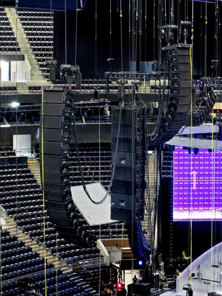 四個(gè)主舞臺(tái)陣列總共部署了 60 個(gè) LEO 和 LYON 線(xiàn)陣列揚(yáng)聲器以及 12 個(gè) 1100?LFC 和四個(gè) 900?LFC 低頻控制元件。前臺(tái)補(bǔ)聲是八個(gè) MINA 和兩個(gè) JM?1P 揚(yáng)聲器。