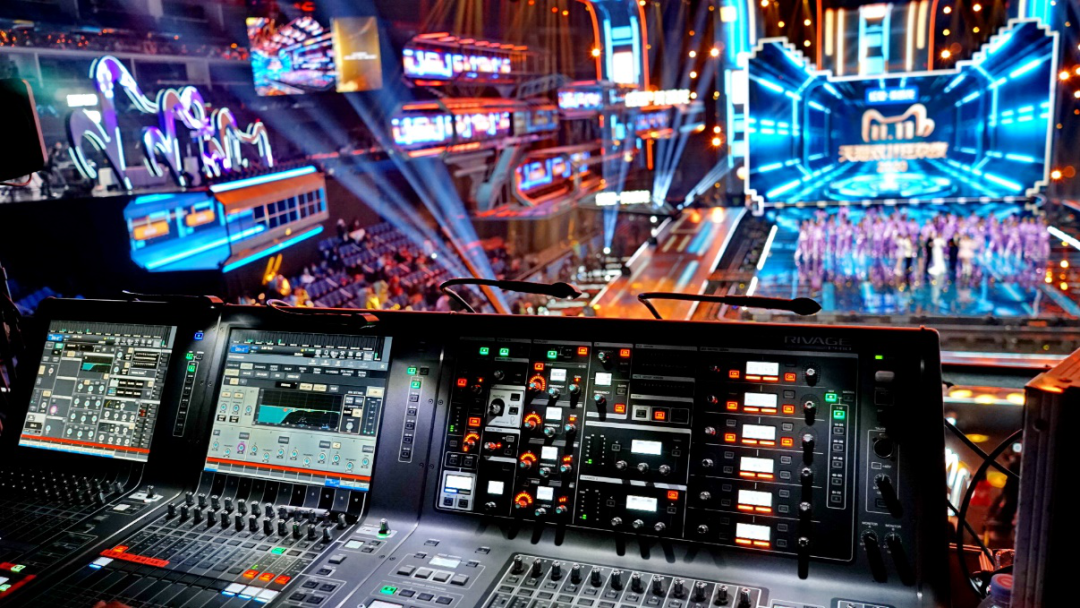 天貓雙11狂歡晚會(huì)現(xiàn)場的RIVAGE PM10數(shù)字混音系統(tǒng)