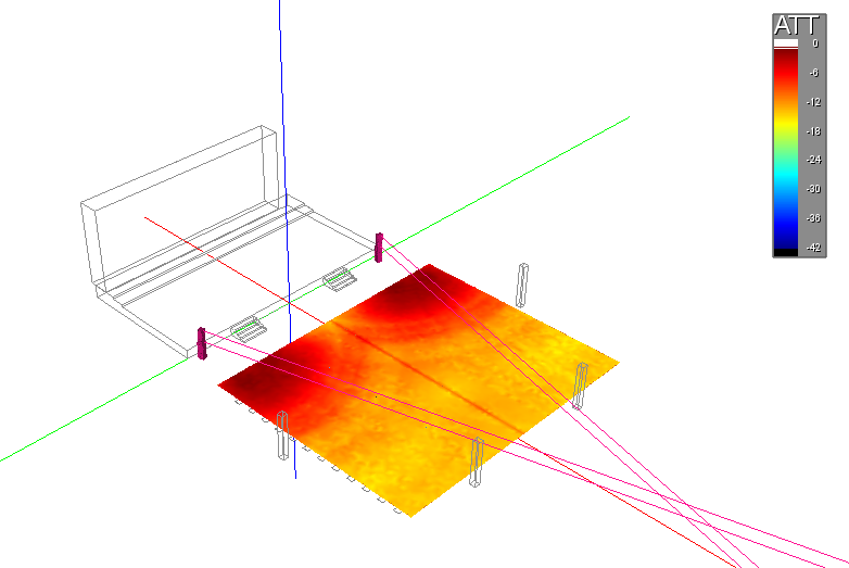 根據(jù)現(xiàn)場(chǎng)環(huán)境和擴(kuò)聲系統(tǒng)有關(guān)國(guó)家標(biāo)準(zhǔn),MAPP 3D 對(duì)整個(gè)場(chǎng)館的聲場(chǎng)進(jìn)行了模擬計(jì)算,精確地預(yù)測(cè)了各個(gè)聲道的聲場(chǎng)與覆蓋范圍,對(duì)實(shí)際擴(kuò)聲系統(tǒng)的配置與安裝起了重要的指導(dǎo)作用。