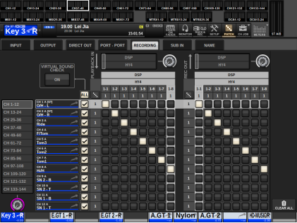 在節(jié)目中的導師評論環(huán)節(jié),RIVAGE PM 系統(tǒng)提供了最多 64ch 的 Dugan Automixer,為擴聲提供了最優(yōu)化的傳聲增益?!督?jīng)典詠流傳》主創(chuàng)團隊對音頻的后期制作也同樣重視,為了保證錄音的萬無一失,在現(xiàn)場有 3 臺電腦進行 Live Recording,每臺都有超過 100 通道的音軌。其中 1 臺臺式機通過 Dante(安裝 Yamaha AIC128-D 聲卡)和 Nuendo Live 軟件進行 128 軌的錄音,另外 2 臺筆記本電腦同時經(jīng)由 RIVAGE PM 系統(tǒng) DSP 上的 MADI 板卡通過 Recording 功能為電腦分配信號,并且同時可以通過 Virtual Sound Check 功能實現(xiàn)錄音工程師或現(xiàn)場導演對于分軌錄音實時回放的需求。